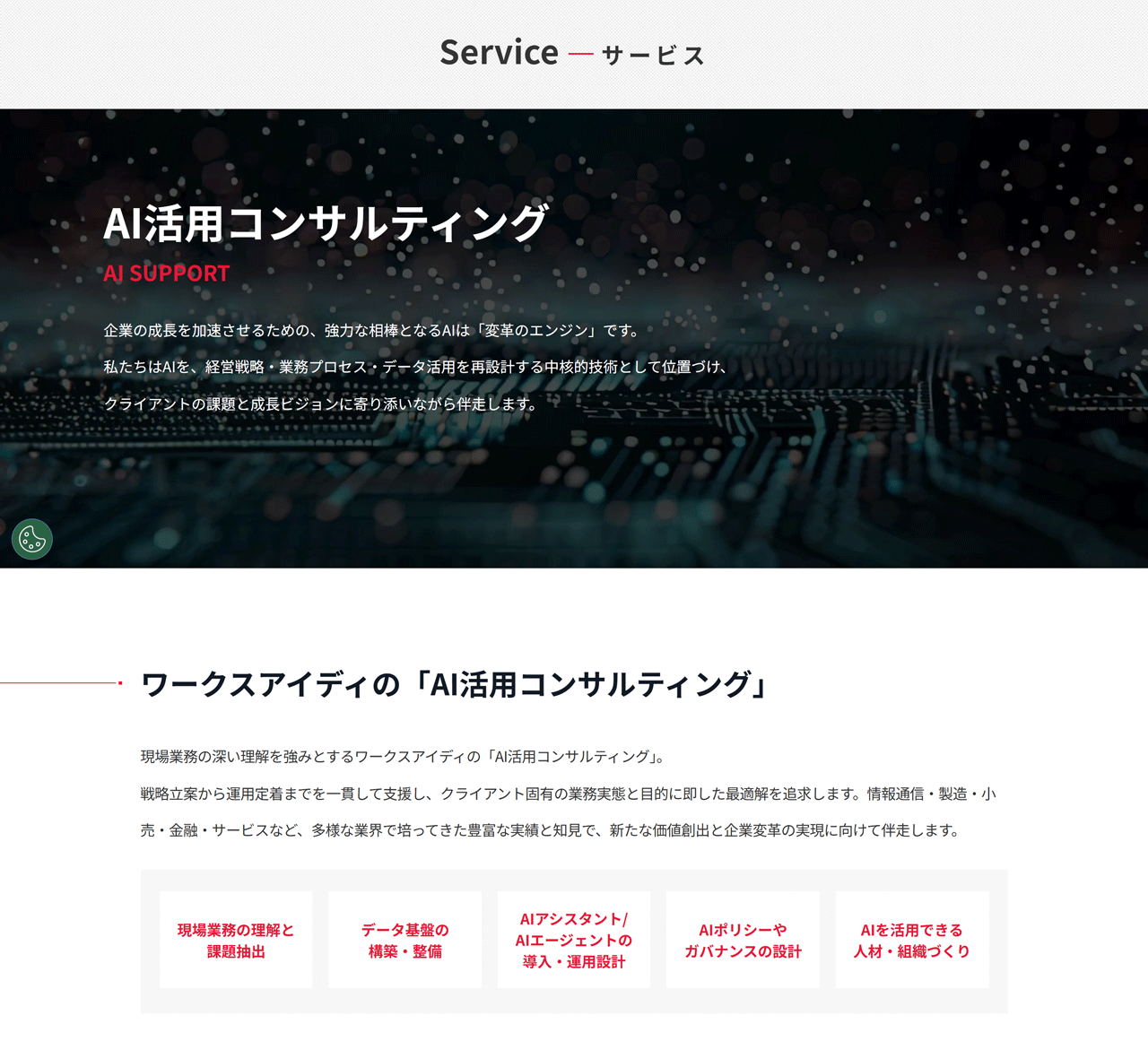 2025年10月27日 「AI活用コンサルティング」ページを公開しました ニュース 当社コーポレートサイトにて、新たに「AI活用コンサルティング」ページを公開しました。AIを経営・業務・データ活用の中核に据えた、当社のサービスをご紹介しています。ぜひご覧ください。AI活用コンサルティングはこちら